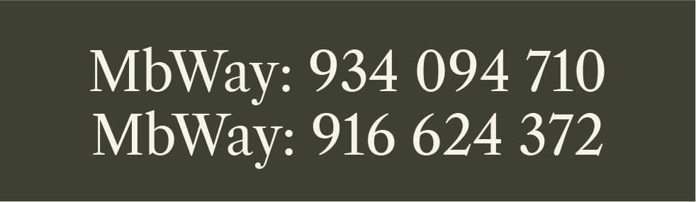 MbWay: 934 094 710 ou 916 624 372